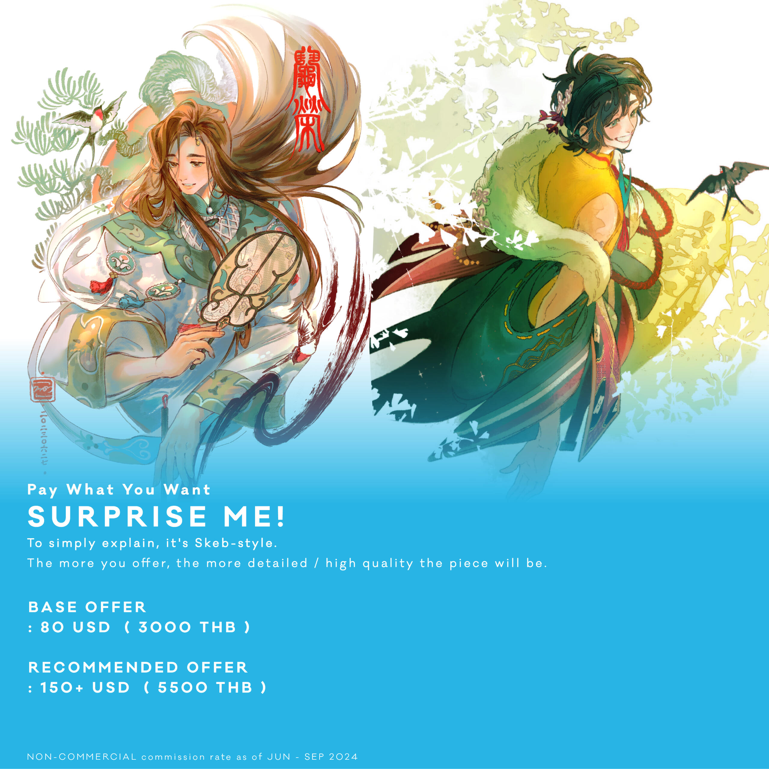 สำหรับผู้ที่สนใจคอมมิชชั่นในรูปแบบที่ไม่มีการพูดคุย หรือติดต่อตรวจงาน (Surprise-Me)