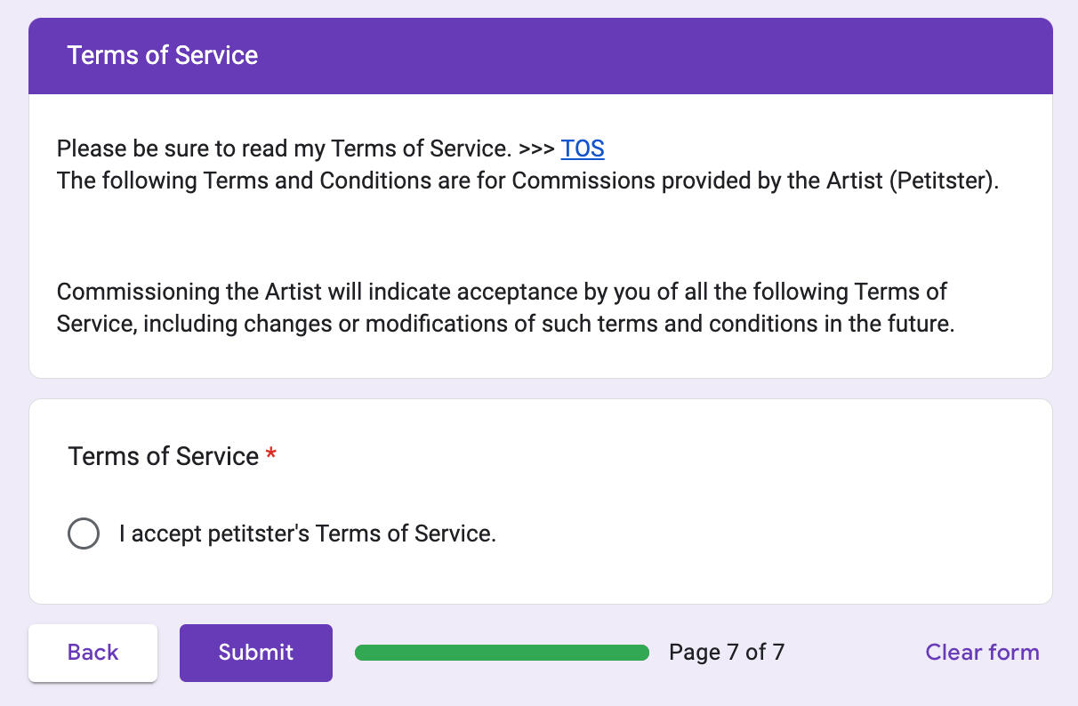 The following Terms and Conditions are for Commissions provided by the Artist (Petitster).