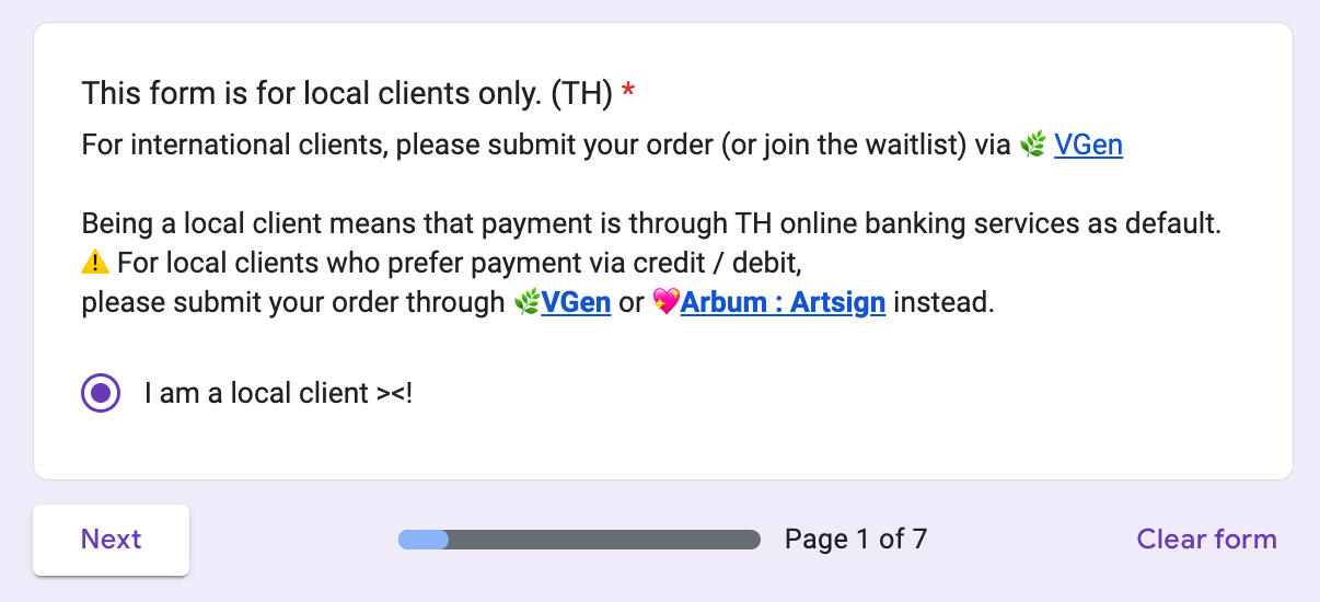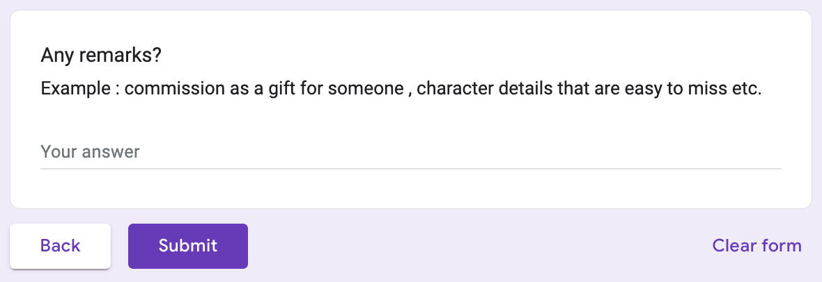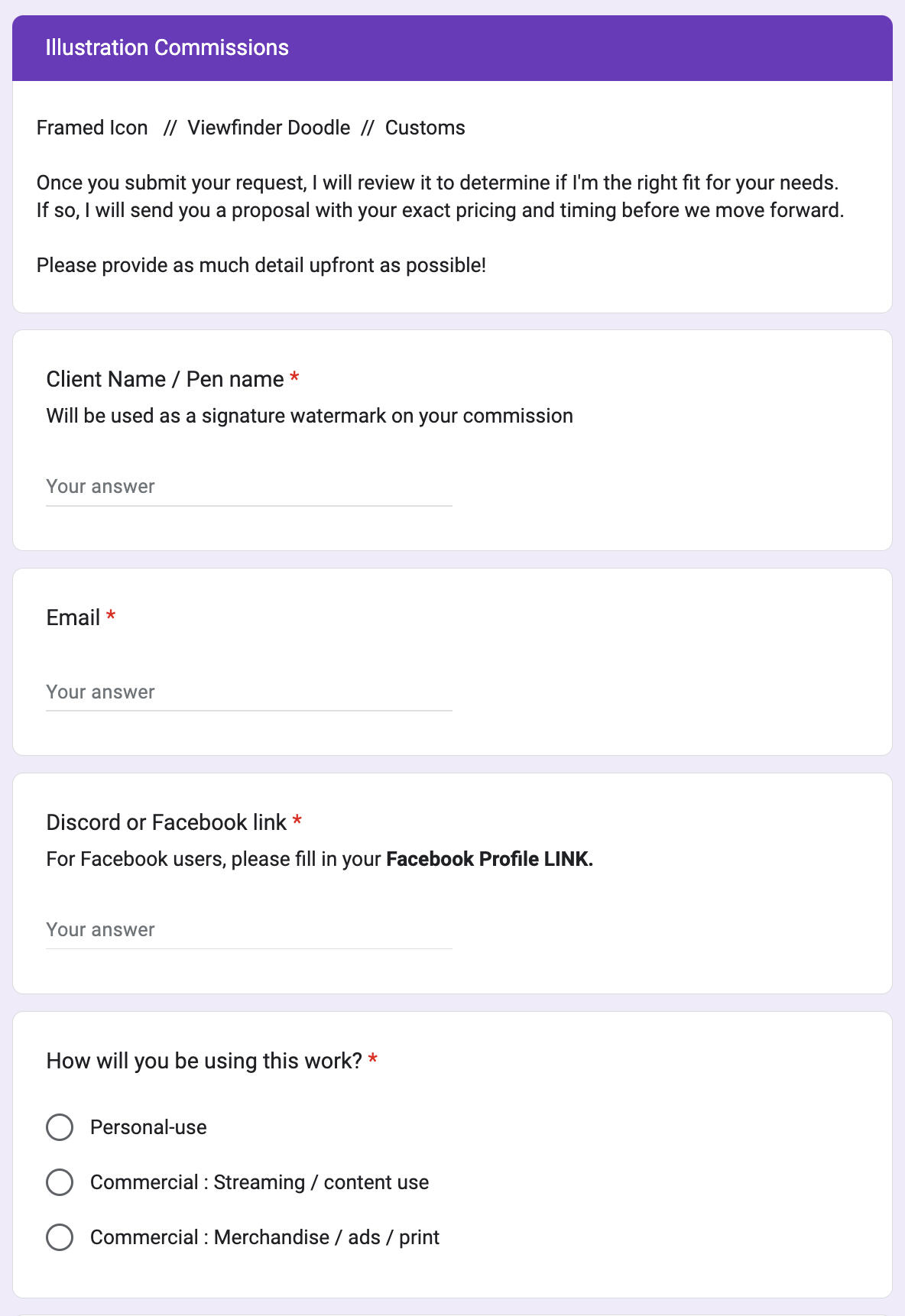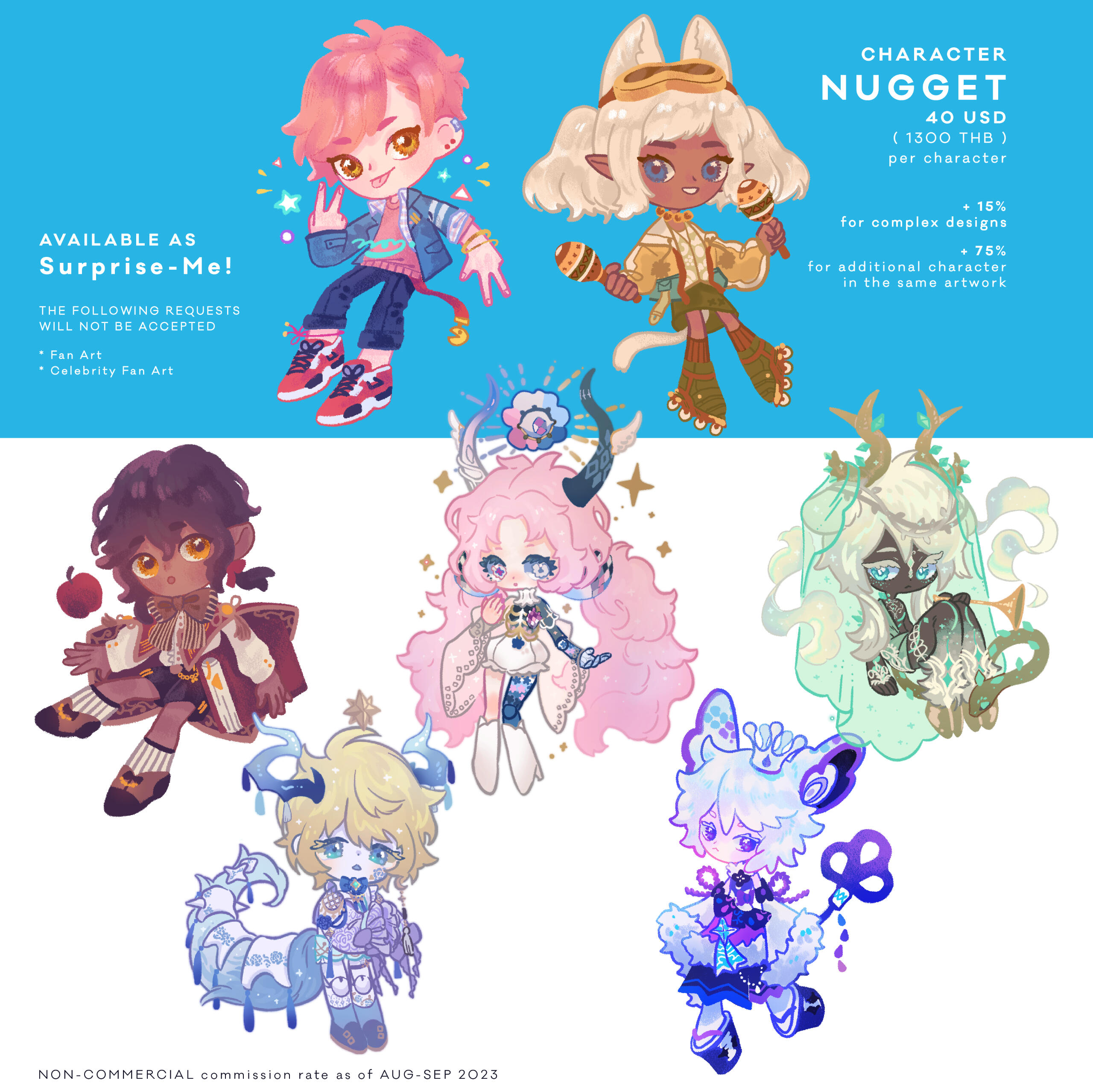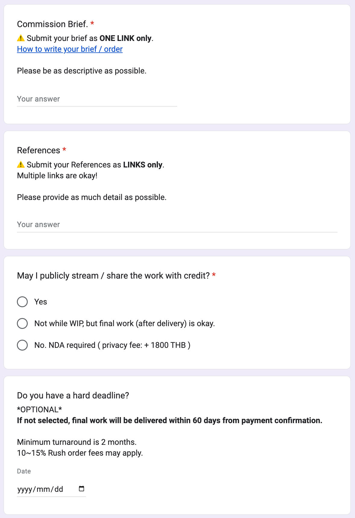 ⚠️ คอมมิชชั่นประเภท Pay What You Want / Surprise Me และ Surprise Nugget จะไม่ต้องกรอก googleform จองคิวค่ะ สามารถส่ง request เข้าระบบ VGen หรือ Artsign โดยตรงได้เลย